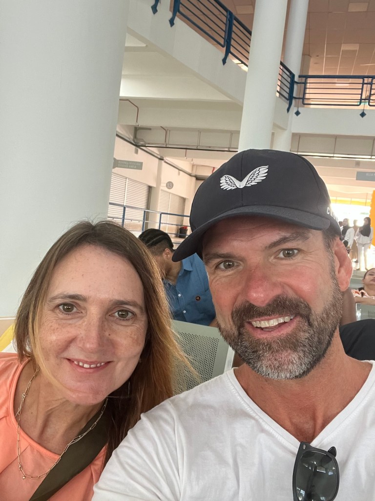 Before the flight and whilst we were at the airport we heard from Jennifer, our Canadian travel buddy from our Lombok trip a month or so back. She was keen to know if we were still wearing our coloured Indonesian wrist band from one of our home visits. The good news is that they are still going strong, hence the photo proof below.