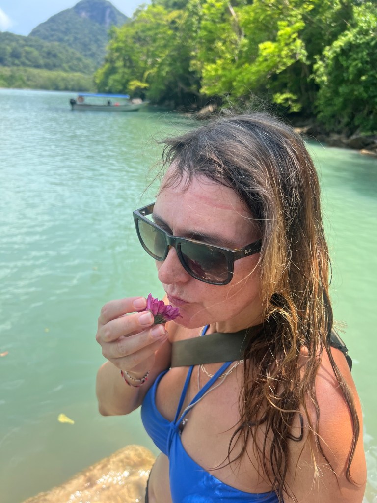 Before we left Michelle decided to place a flower in the waters of the Pregnant Woman Lake in memory of her mum who died some 23yrs ago today.