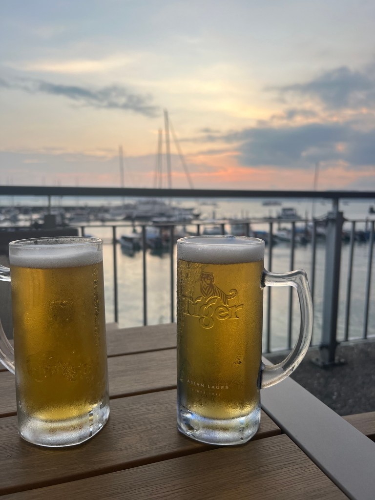 As this is our last night on the island of Penang before we fly up to Langkawi, we headed out for drinks and a bite to eat at one of the beach restaurants. Tiger beer as ever was the first thing on the menu, with Andy keen to get his thirst quenched before making any decisions on the food.