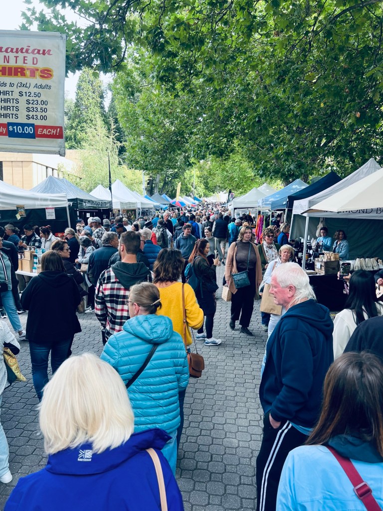 We managed to get back to Hobart for 10am and joined the throng of people working their way around the 300 stalls that make up the Salamanca market. It’s an array of Tasmanian produce, be that food, drink (lots of vodka, whiskey, wine, cider and beers….) as well as clothing, books and their authors as well as every possible item you never knew you needed!