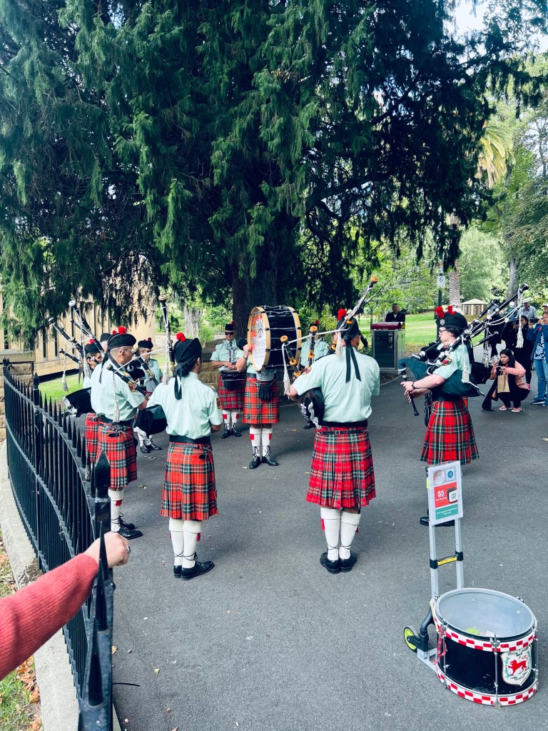 Naturally there was Scottish pipe band playing….