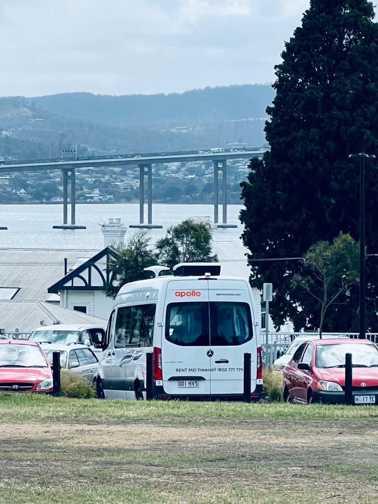 New Mona Roma building – more stalls more food & wine!!Best fish & chips in Hobart (so we were told..!)The new camper with the Hobart bridge in the background