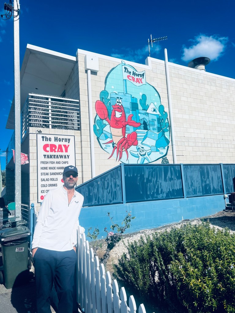 We decided to treat ourselves and enjoyed the Horny Cray’s finest Hake and chips. Not bad for 16 dollars and a great view looking out across the beach.