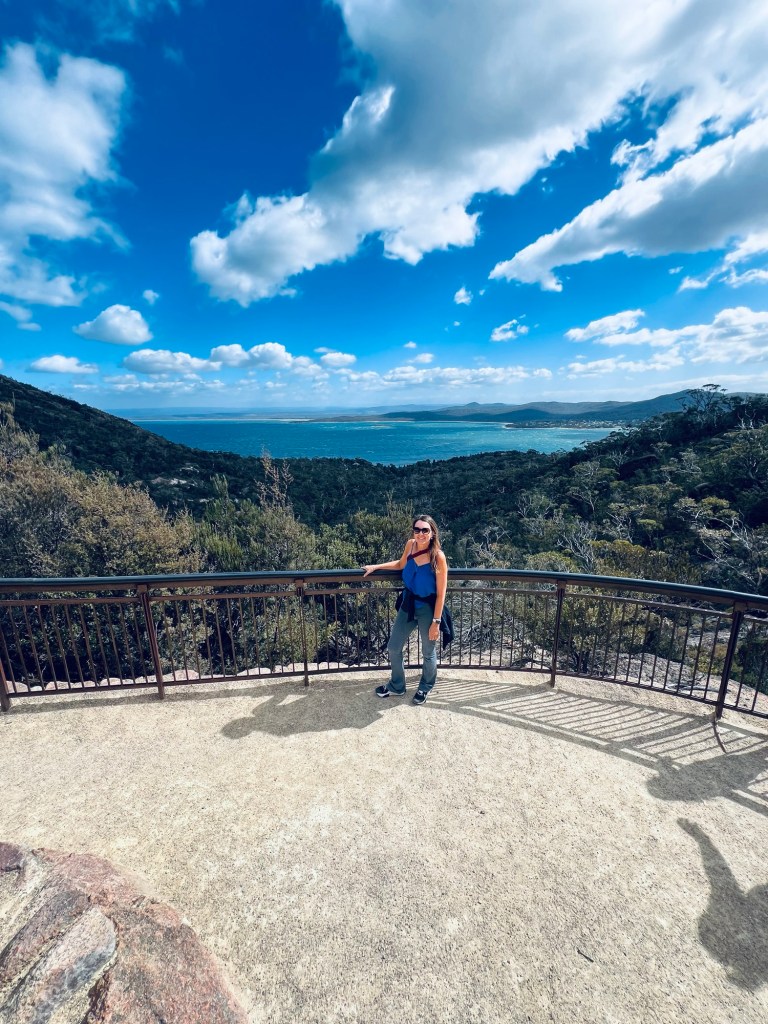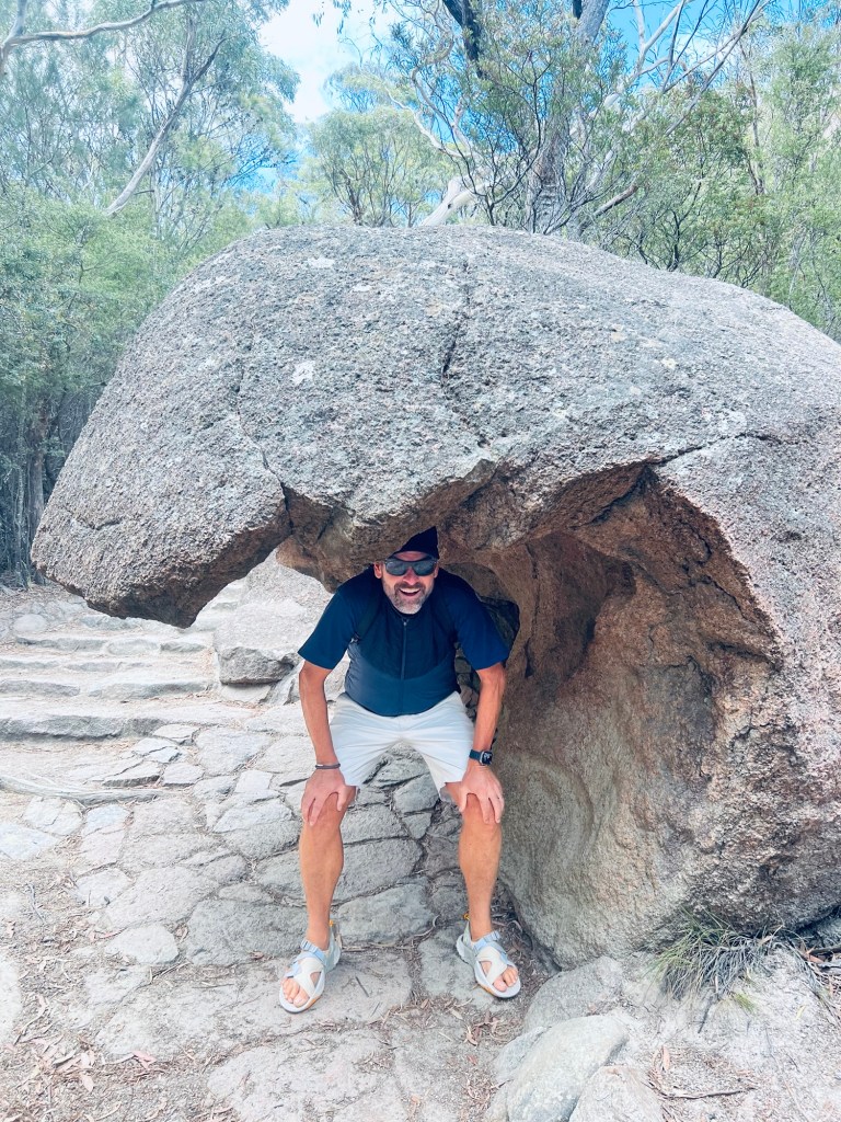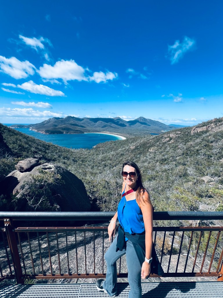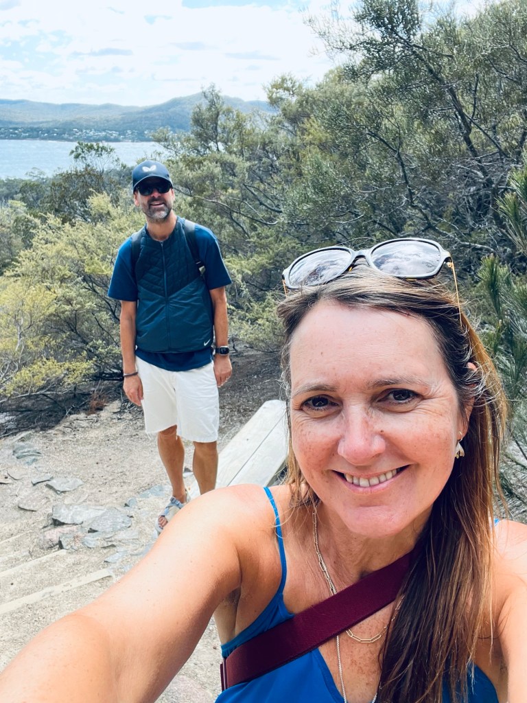 After picking up our pass to gain entry to Freycinet National Park, we started the climb up to Wineglass Bay viewing point. We had been prior warned it was a decent climb and a lot of steps up and over to the beach on the other side.