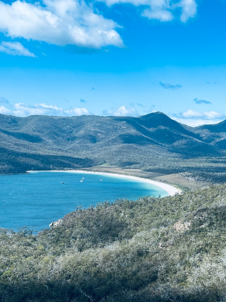The views out over Wineglass Bay are stunning and show its perfectly shaped beach.