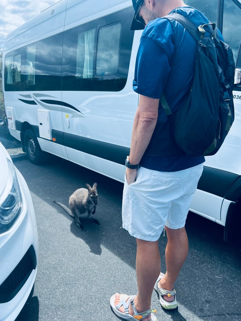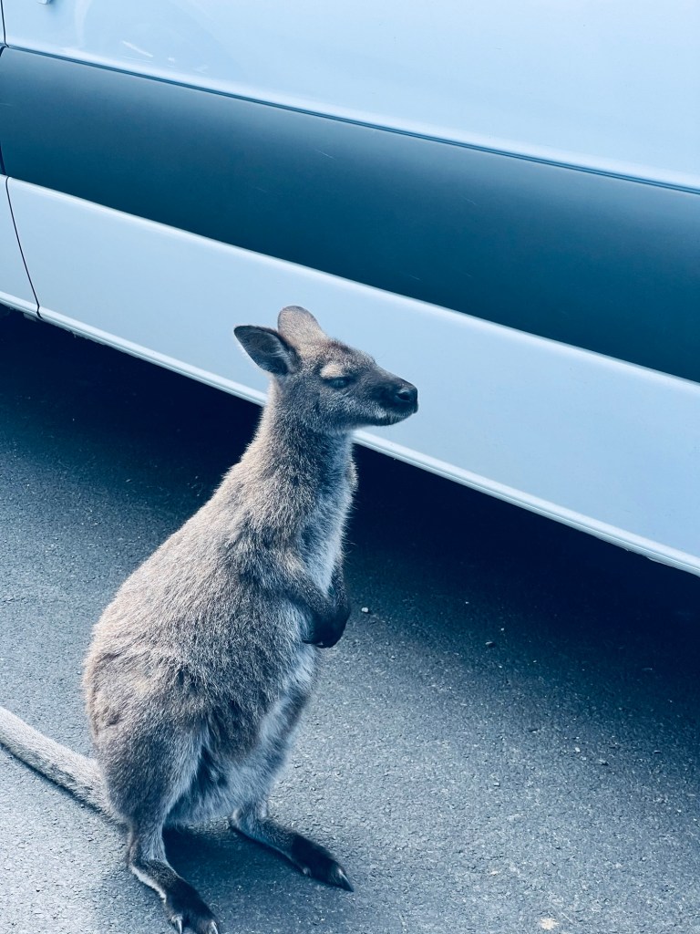 After parking the van to walk up to Cape Tourville lighthouse we came across another friendly wallaby who clearly was looking for food. He seemed totally unbothered by the van or people being up close.