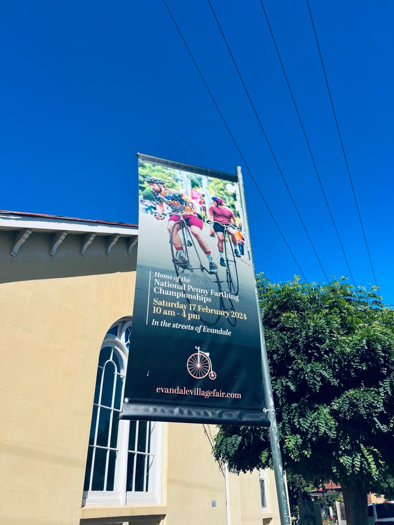 Evandale’s claim to fame is being the hosts for the penny farthing championships. The last one was held in mid-Feb and attracts competitors from across Oz and the world!