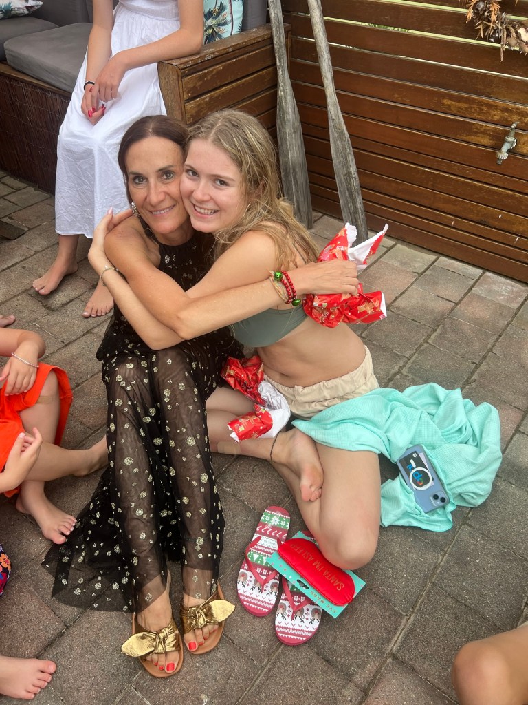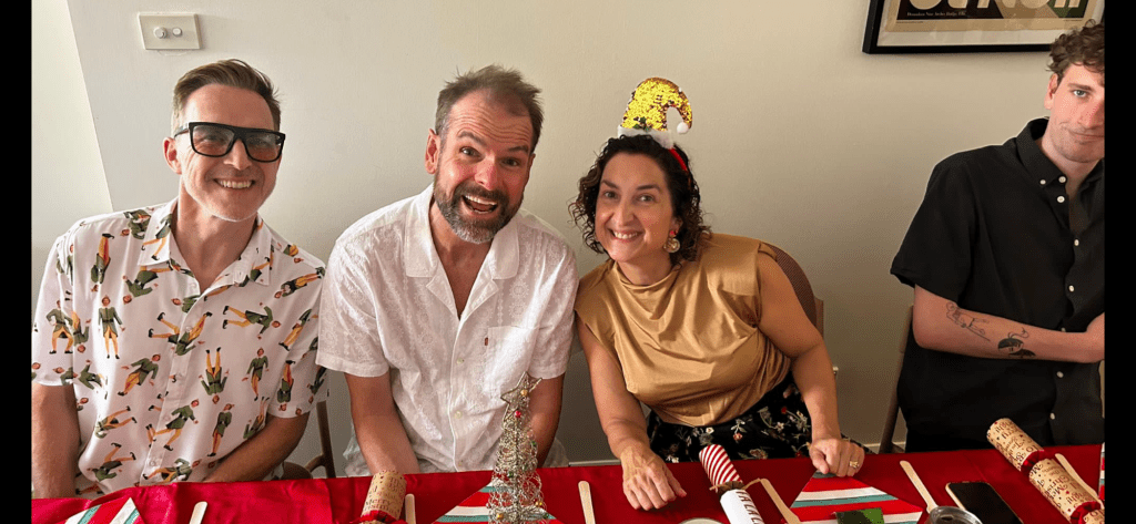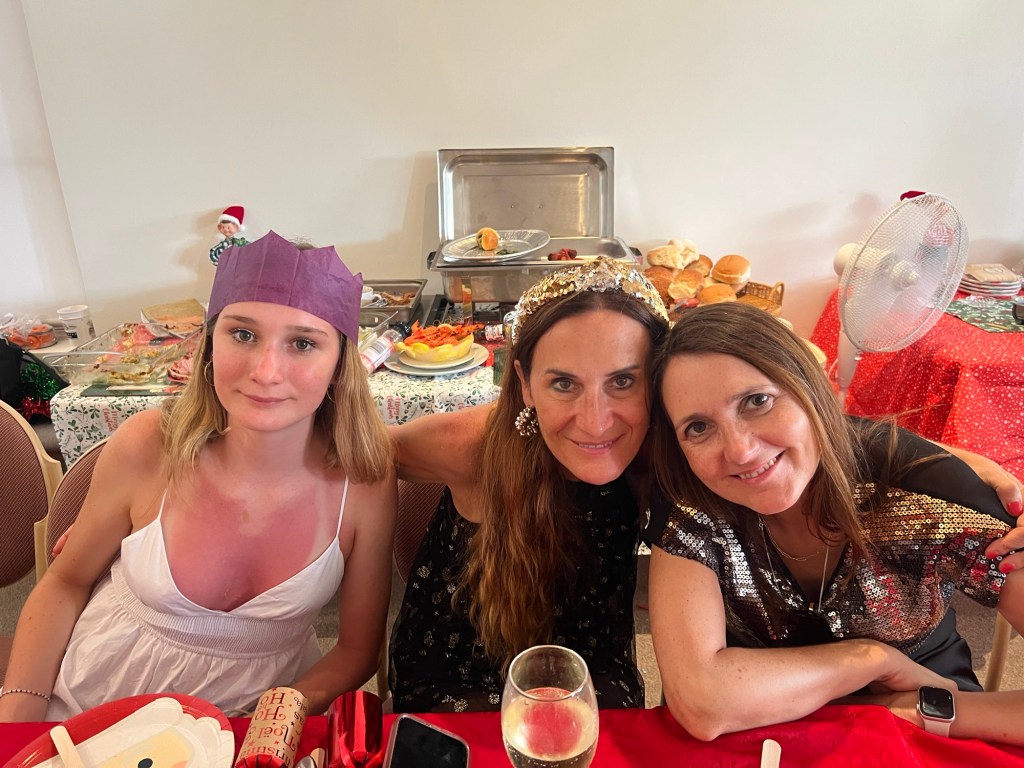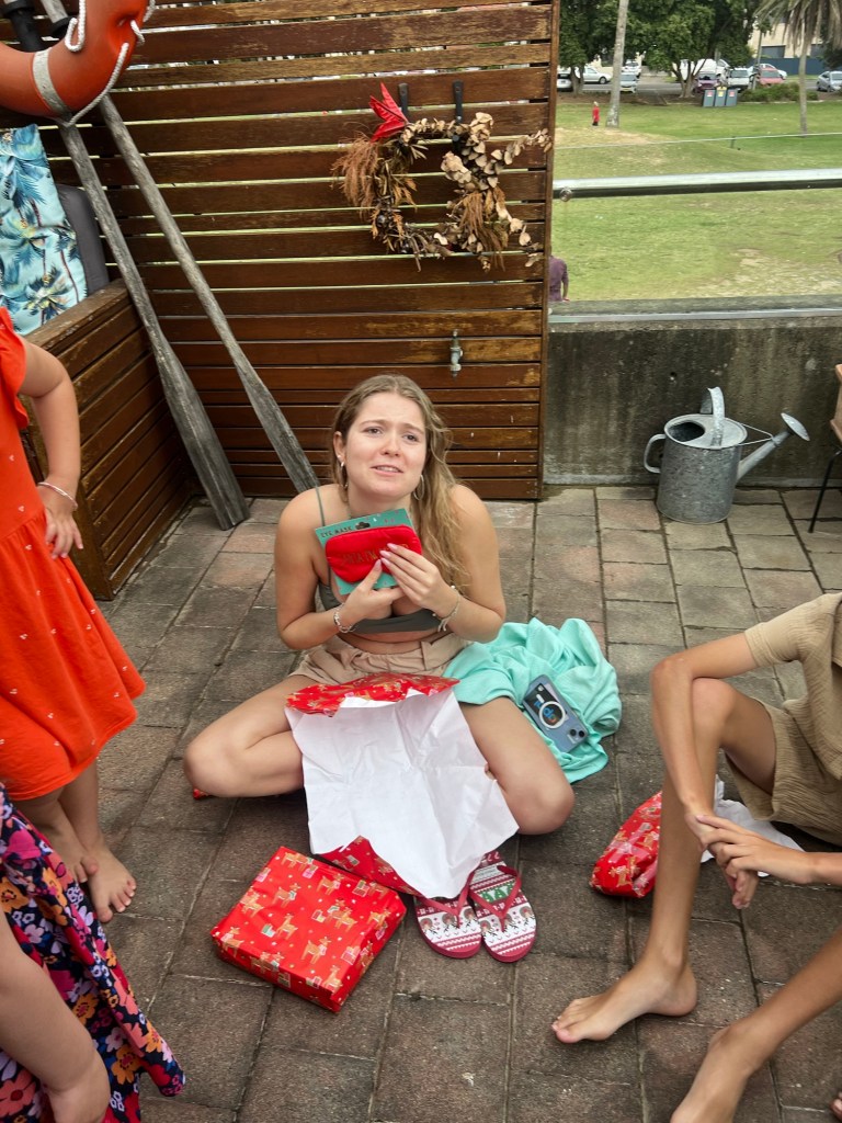 Our lunch venue for Xmas Caroline & Michelle about to start the feast. Camille, Caroline & Michelle Amelia receiving more Xmas gifts…Godmother and goddaughter The kids at Xmas Drinks with Andrew, Blair and AndyGary, Andy & Tracy A proper Aussie Xmas Relaxing post lunch After the clear up – Jamie, Caroline & Michelle The kids chillaxing One happy customer